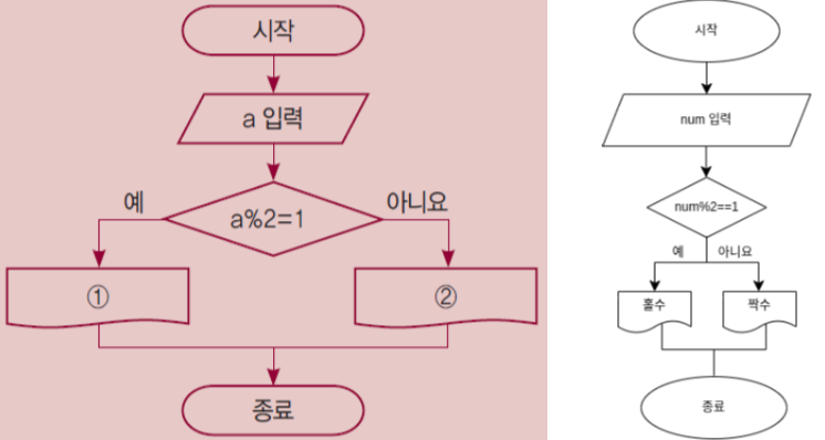 🌟과제 11번, 홀수, 짝수 판별하고 다음 순서도의 1, 2번 채우기