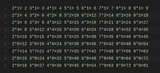 🌟 과제 27번, 다음과 같은 형식으로 출력되는 구구단 코드.